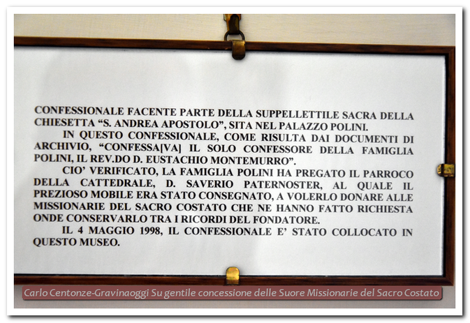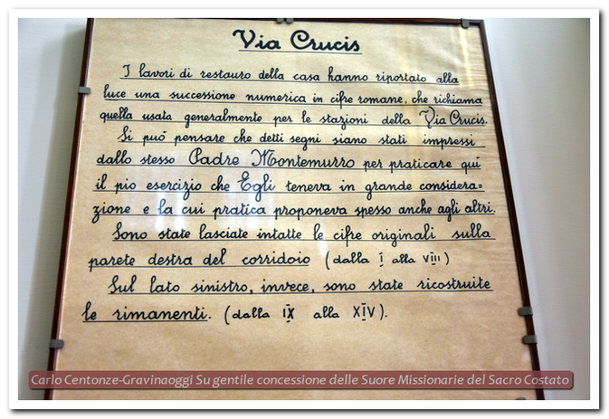Il rinvenimento, durante i lavori di restauro, delle prime nove stazioni della Via Crucis, pia pratica cara a padre Eustachio, segnate in rosso sul tufo lungo il corridoio di accesso alle camere, portò alla determinazione di destinare il primo piano della casa a museo storico di quanto era appartenuto al padre Fondatore, a padre Saverio e ai primi Piccoli Fratelli.