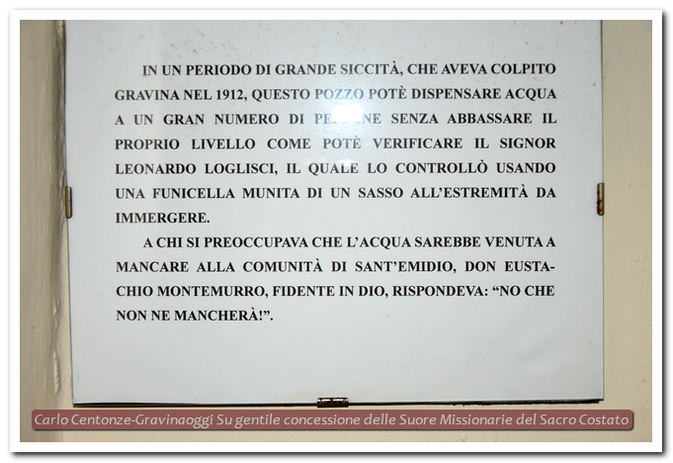 Oggi nella chiesa riaperta al culto, oltre all’adorazione Eucaristica, si celebra la santa Messa. Visitando la “Casa Montemurro” è possibile vedere la stanzetta di don Eustachio e quella di don Saverio, la menzionata cisterna, il corredo dei paramenti sacerdotali dei due sacerdoti gravinesi in concetto di santità, e diversi strumenti di penitenza utilizzati loro. Una scalinata reca il visitatore, scendendo per due piani al disotto del piano terra, in un cellario fresco, dove è possibile raccogliersi in preghiera e percorrere le 14 stazioni della via crucis.